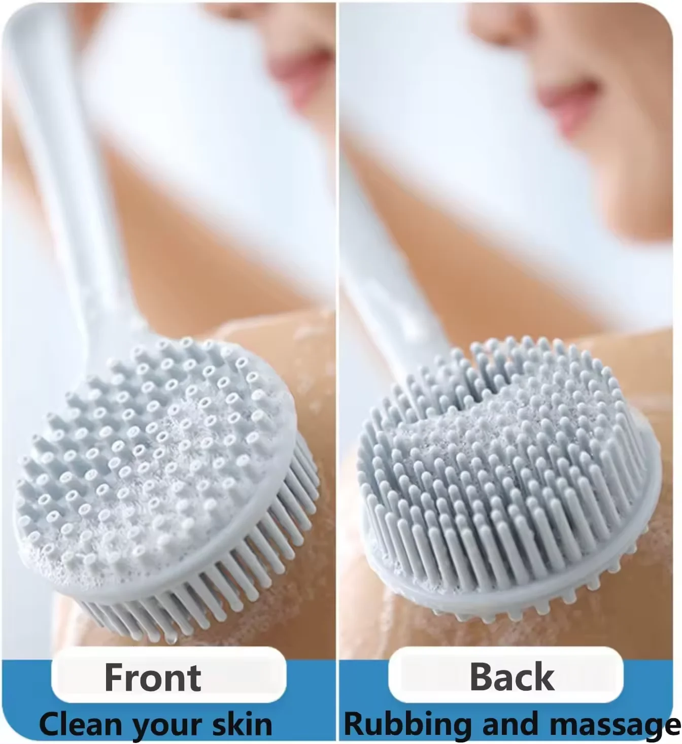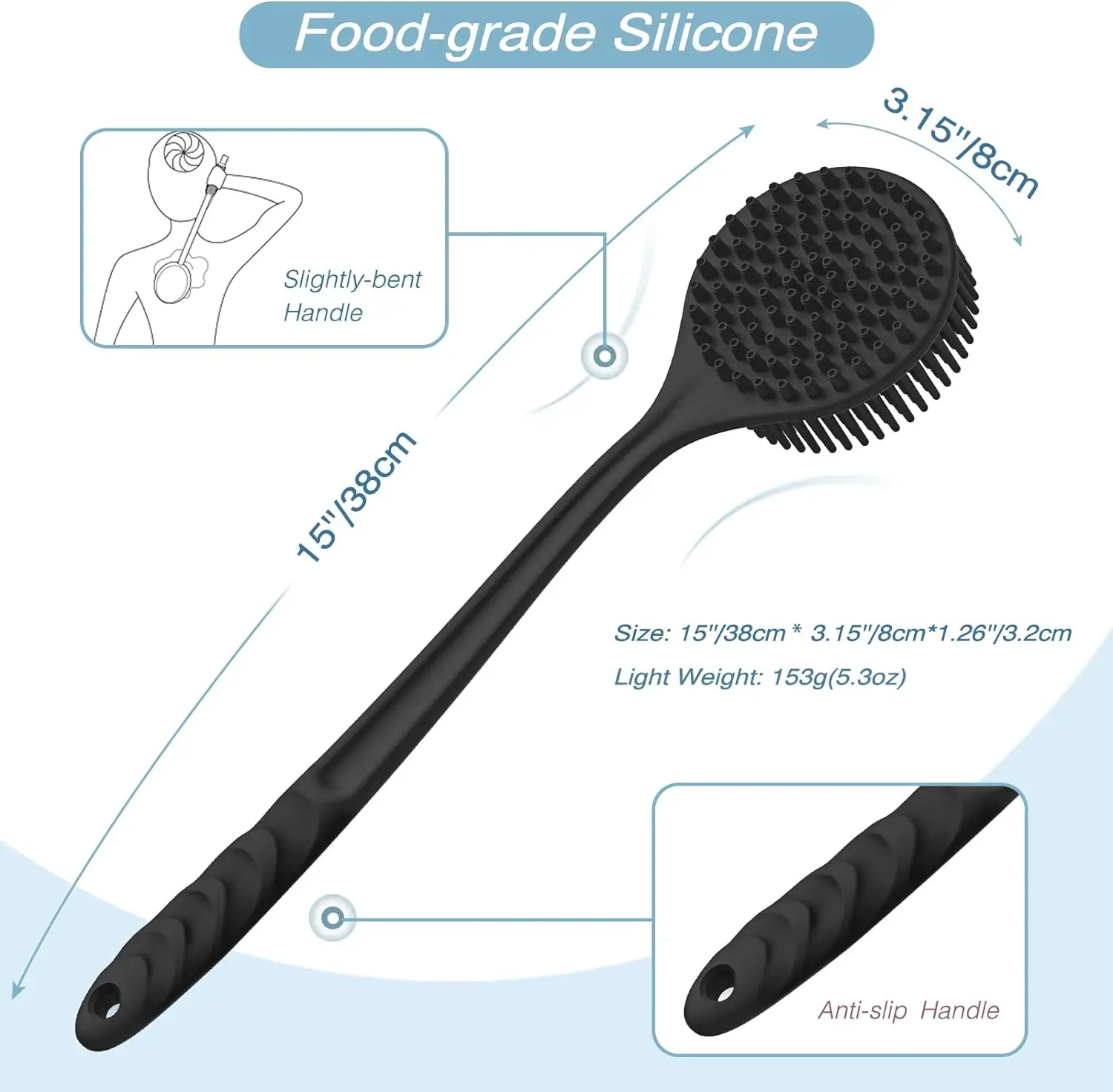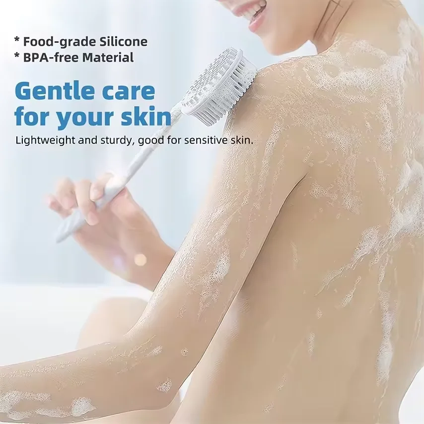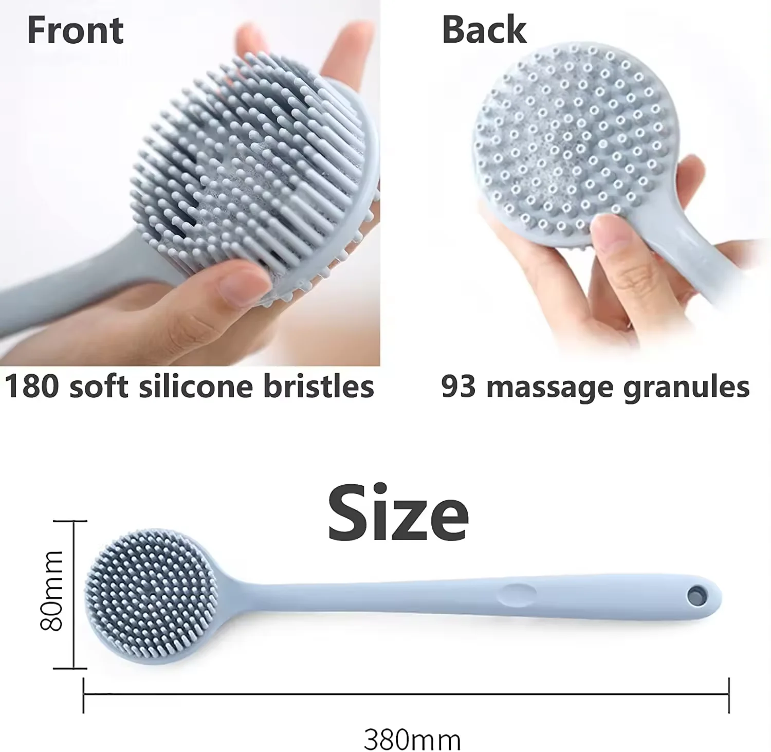 Soft Long Stick Handle Massage Exfoliating Scrubber Cleaning Double Sided Bath Body Brush Silicone Back Scrubber for ShowerSoft Long Stick Handle Massage Exfoliating Scrubber Cleaning Double Sided Bath Body Brush Silicone Back Scrubber for Shower